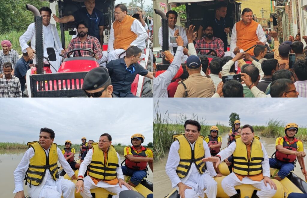 भारी बारिश और आपदा के हालातों के बीच लक्सर पहुंचे मुख्यमंत्री धामी, ट्रैक्टर पर बैठकर और राफ्ट से किया आपदा प्रभावित जलमग्न क्षेत्रों का निरीक्षण।
