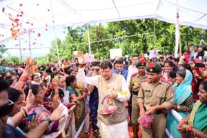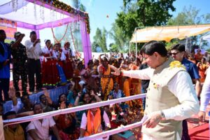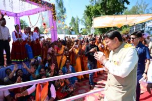 पारंपरिक लोक संगीत और सांस्कृतिक उल्लास से भरे इस आयोजन में महिलाओं ने पारंपरिक परिधान पहनकर मुख्यमंत्री का ढोल-दामऊ और छोलिया नृत्य के साथ स्वागत किया, जबकि विद्यालय के बच्चों ने बैंड वादन से वातावरण को और भी ऊर्जावान बना दिया।
