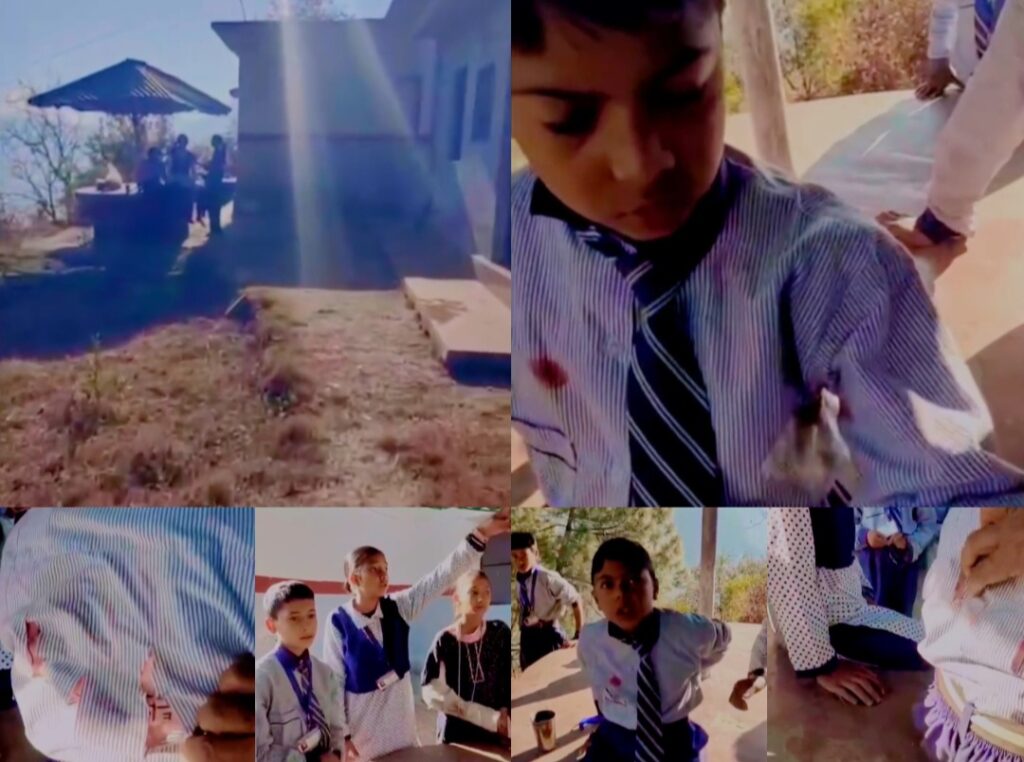 आरव के शरीर पर भालू के नाखूनों के निशान पाए गए हैं और उसके कपड़े भी फट गए हैं। गनीमत रही कि समय रहते मदद मिलने से उसकी जान बच गई। घटना के बाद छात्र-छात्राओं में गहरा डर बैठ गया और कई बच्चे रोते-बिलखते नजर आए।