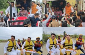 भारी बारिश और आपदा के हालातों के बीच लक्सर पहुंचे मुख्यमंत्री धामी, ट्रैक्टर पर बैठकर और राफ्ट से किया आपदा प्रभावित जलमग्न क्षेत्रों का निरीक्षण। uttarakhandlive24