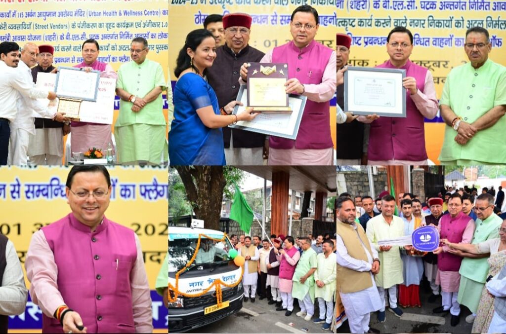 प्रदेश 52 निकायों में 115 अर्बन आयुष्मान आरोग्य मंदिर शुरू, मुख्यमंत्री धामी ने 15,600 नए आवासों का किया लोकार्पण, राज्य को मिले 244 नए वाहन, सीएम ने दिखाई हरी झंडी।